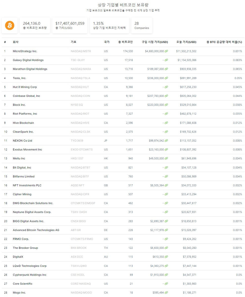 한편 한국 기업 중에서 가장 많은 비트코인을 보유한 곳은 디지털자산관리 플랫폼 기업 디지파이넷입니다. 이 회사는 위의 순위에는 들지 못하였습니다.